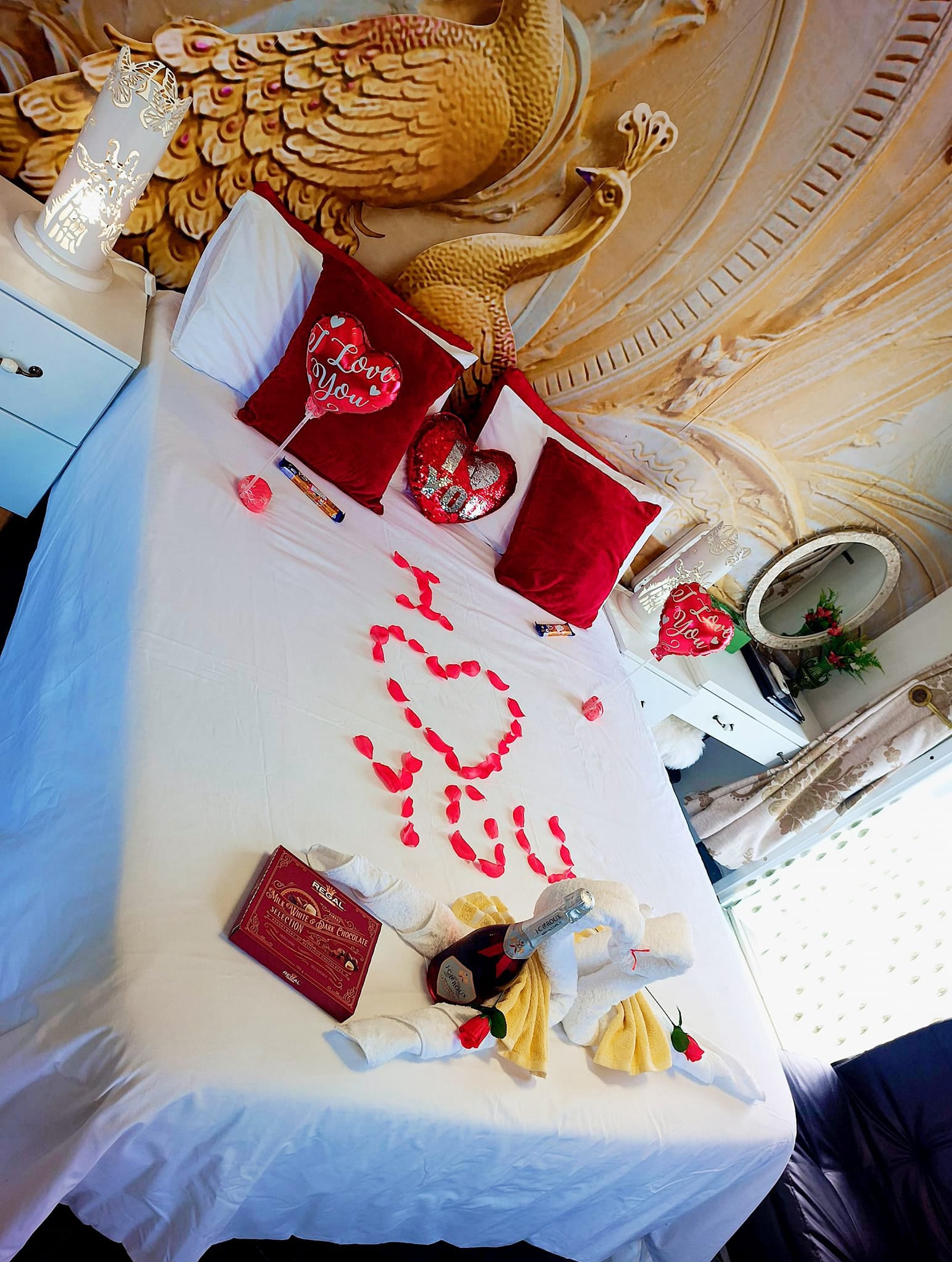This Suite has the best available on offer, Its uniquely decorated to detail with the most modern finishes with modern decor, This Suite can sleep a single person or a couple, it has been designed to be suitable to semi disabled persons with a King size bed, Air-conditioning, dressing table and couch it has a unique bathroom with a golden Jet spray shower which is walk in which is suitable for disabled people who cannot do a step into a shower, A large TV with Open-view satellite TV and Netflix, and a fully equipped kitchen and a veranda to relax on. secure parking for 1 car. Read more..