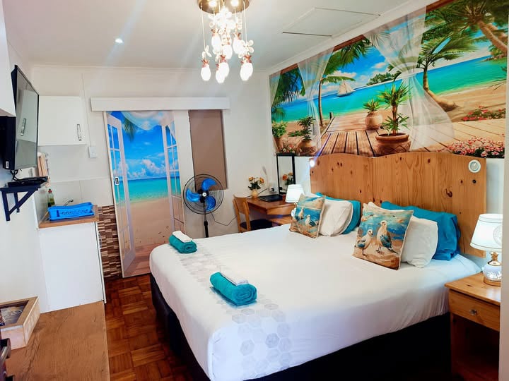 This Room has been uniquely decorating to the beach theme, it boasts a king Bed, a kitchenette, , A TV with open-view satellite TV and Netflix, A Dressing table and a ensuite bathroom with Shower. There is also a Relax on the veranda overlooking the Garden and pool area. secure parking for 1 car, Read more..