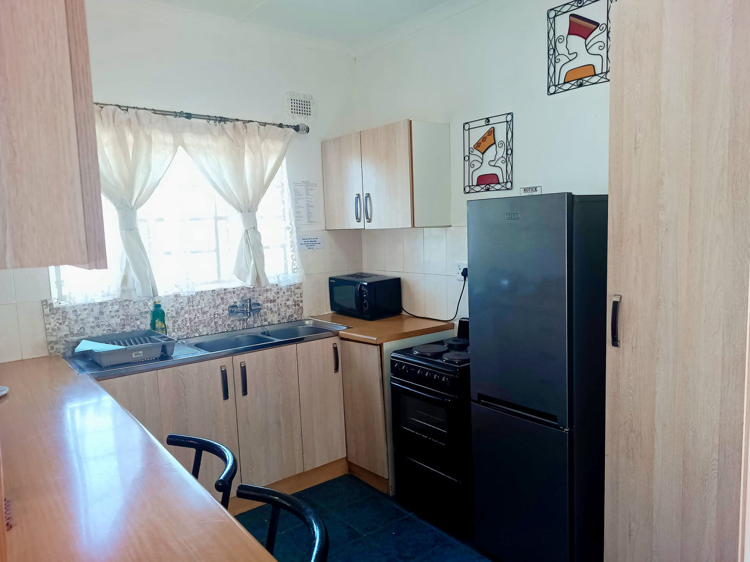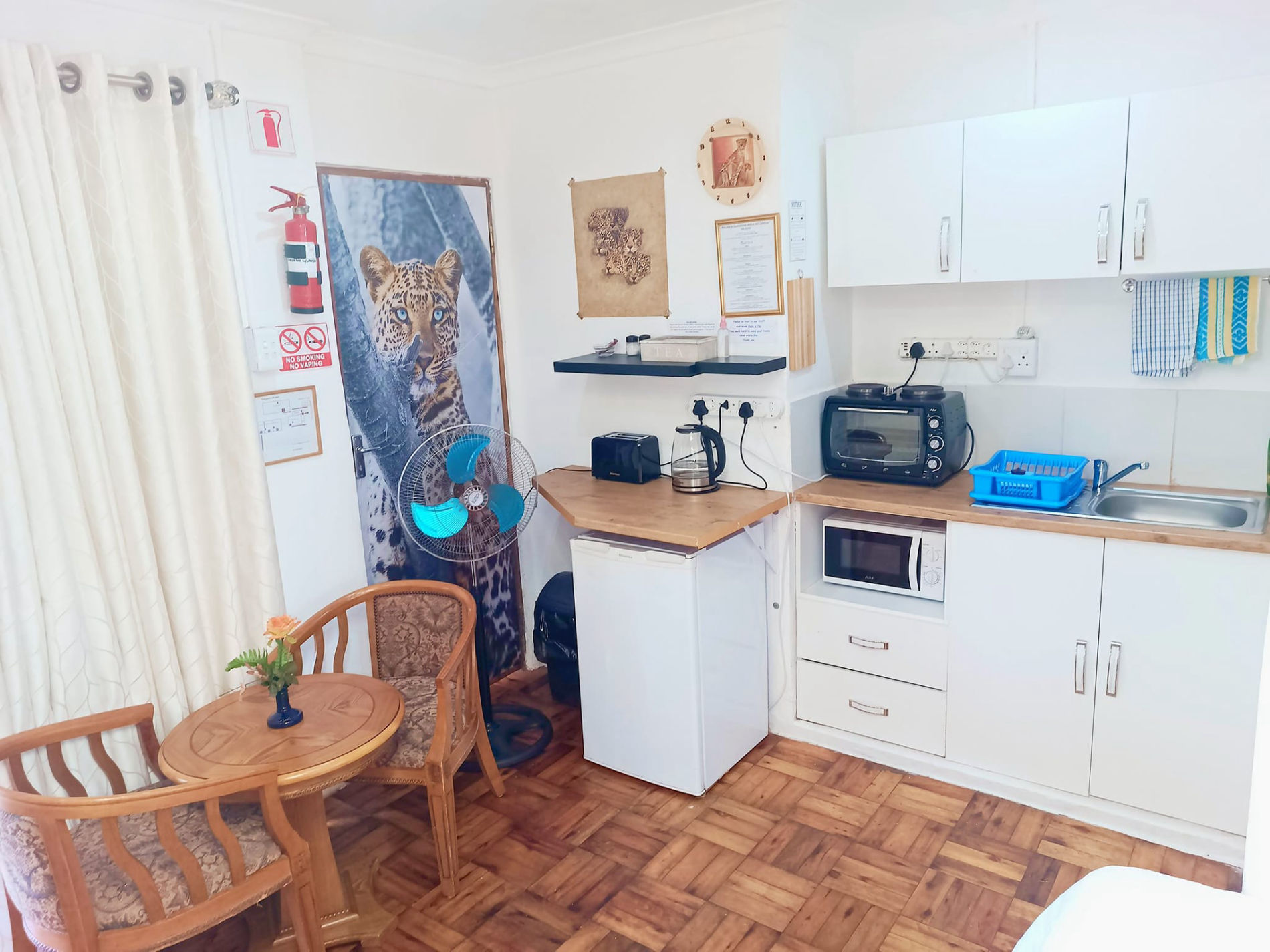 * self catering kitchen * Bar Fridge *Microwave* kettle * toaster* Tea and coffee facilities and biscuits* Tv with Netflix and Openview* semi disabled friendly*