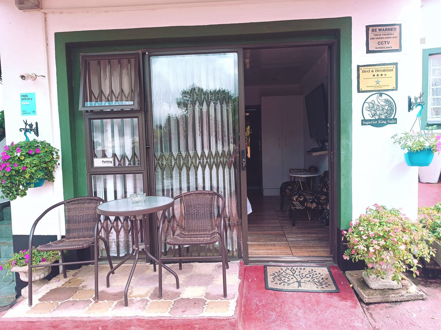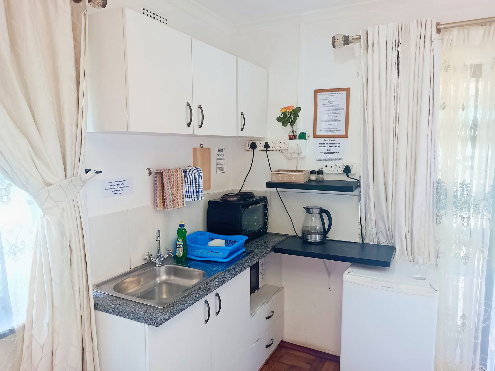 *White Toweling Dressing Gown* Hairdryer* Dressing Table* Sanitizer* Bath towels * *Housekeeping Daily* Secure Parking for 1 car* Veranda *Air conditioning* White linens* Backup power during load shedding* Backup water *