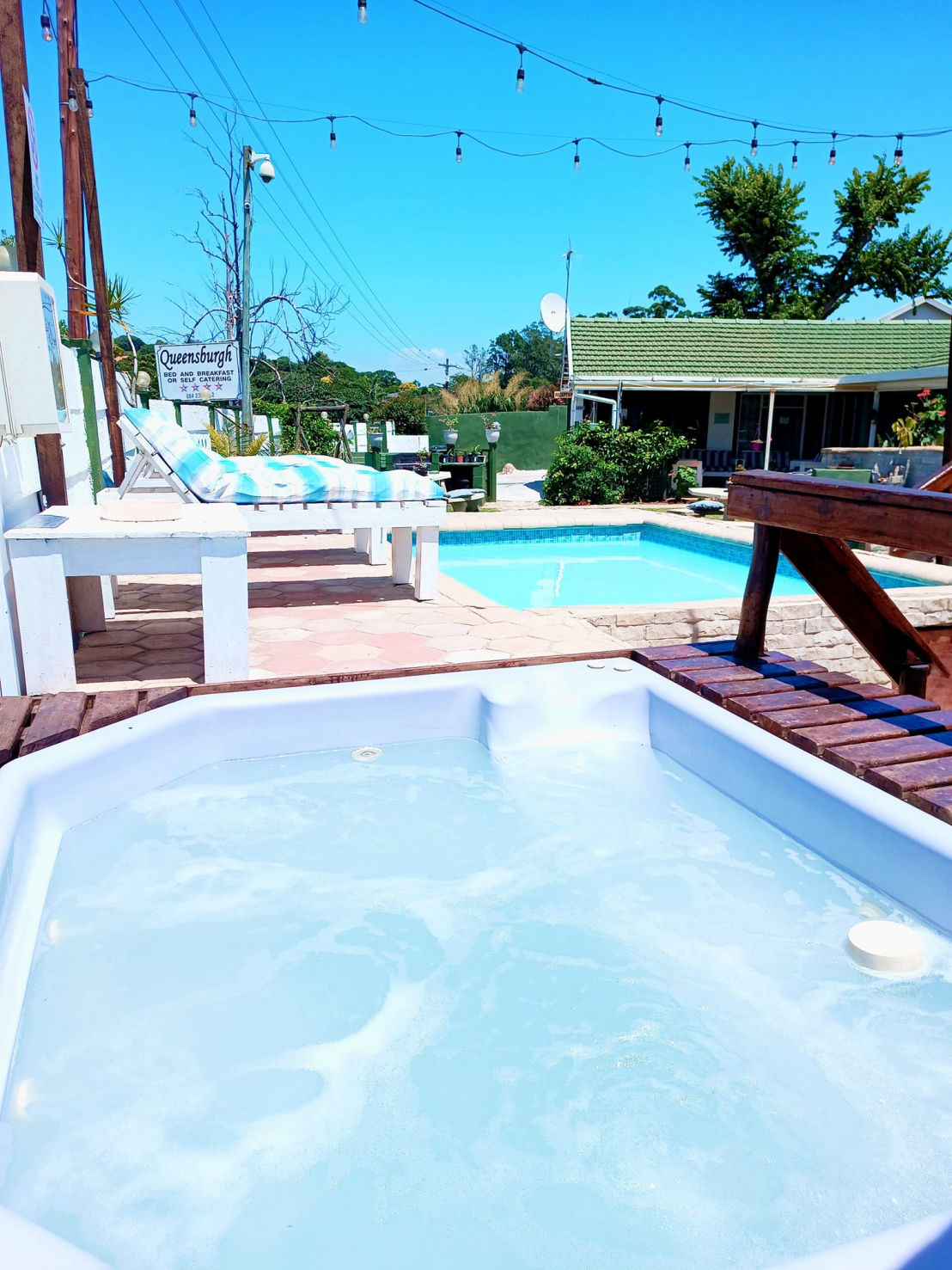 Enjoy the bubbles of the Jacuzzi in the warm sun.